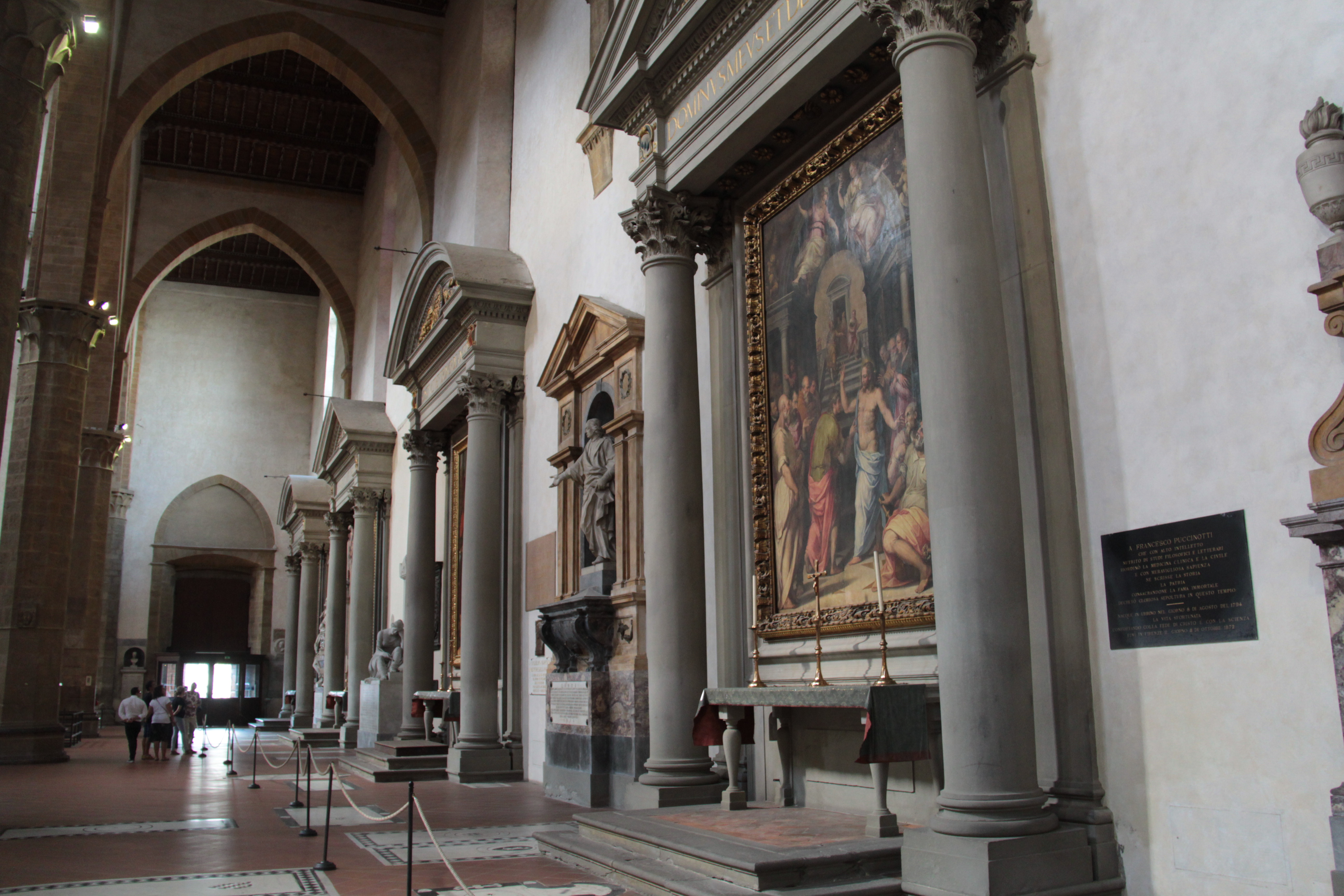 The Basilica of Santa Croce is the largest Franciscan church in the world and also the the principal Franciscan church in Florence. Basically, it is famous for having tombs of most illustrious Italians, like Michelangelo or Galileo. The current church was built in 1294 and the constructions ended up in 1442.