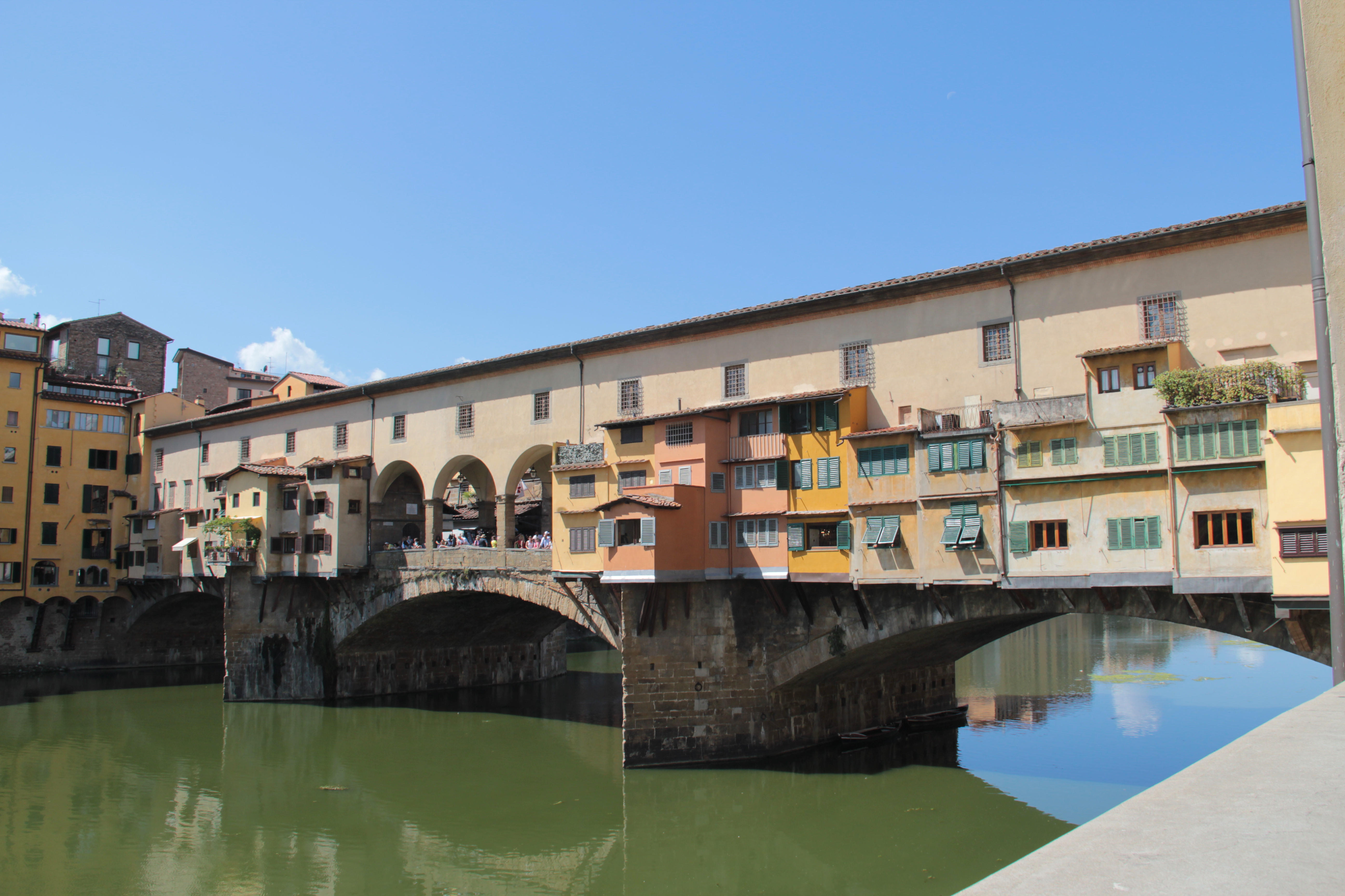 Ponte Vecchio means “Old Bridge” in Italian. This old bridge is a medieval stone closed-spandrel segmental arch bridge over the Arno River. Basically, it is famous because it has shops from all kind on it, like jewelers, art dealers and of course souvenir sellers. Unlike any other bridge in Florence, the Ponte Vecchio was the only one which wasn’t destroyed during WWII.