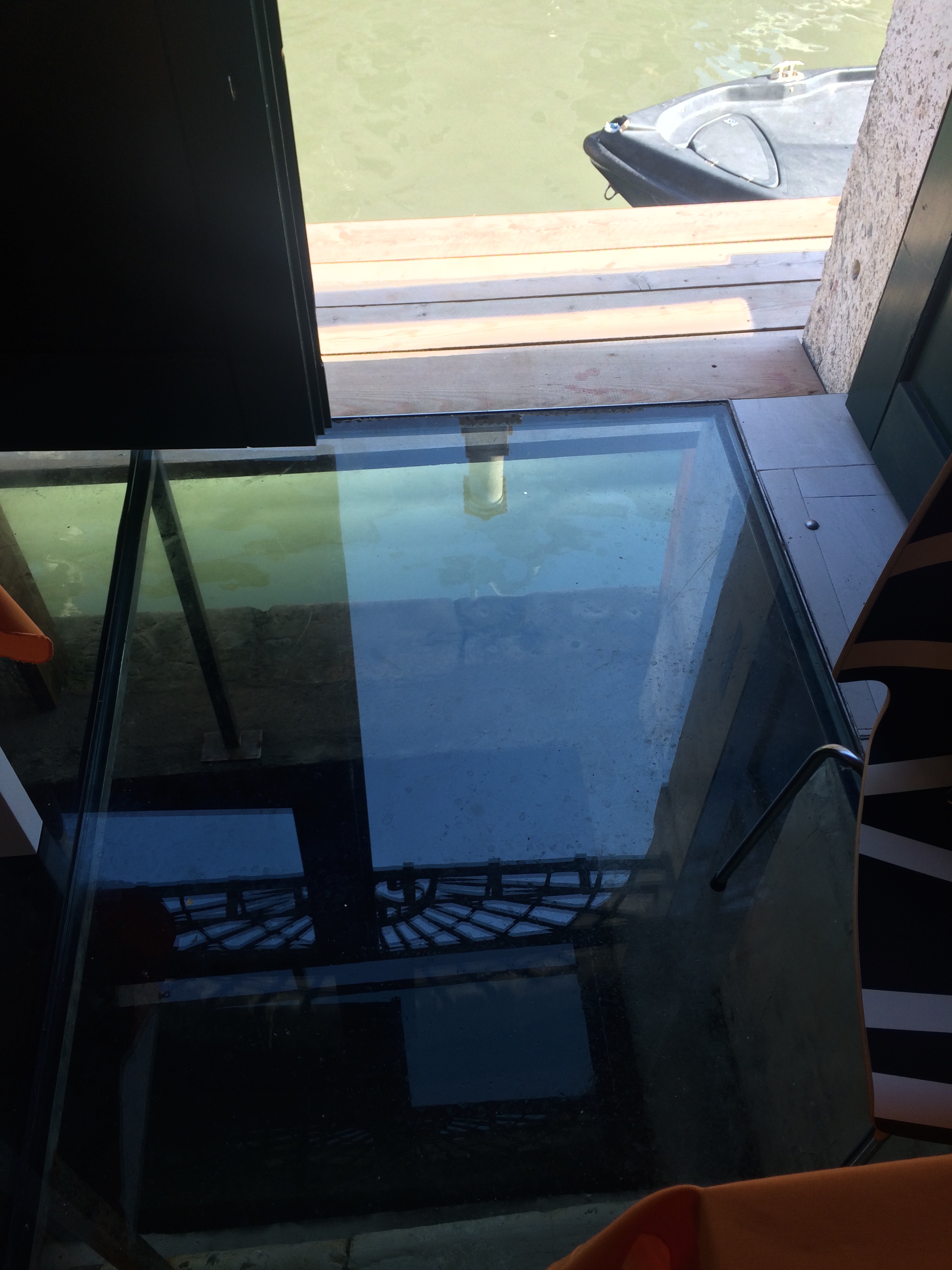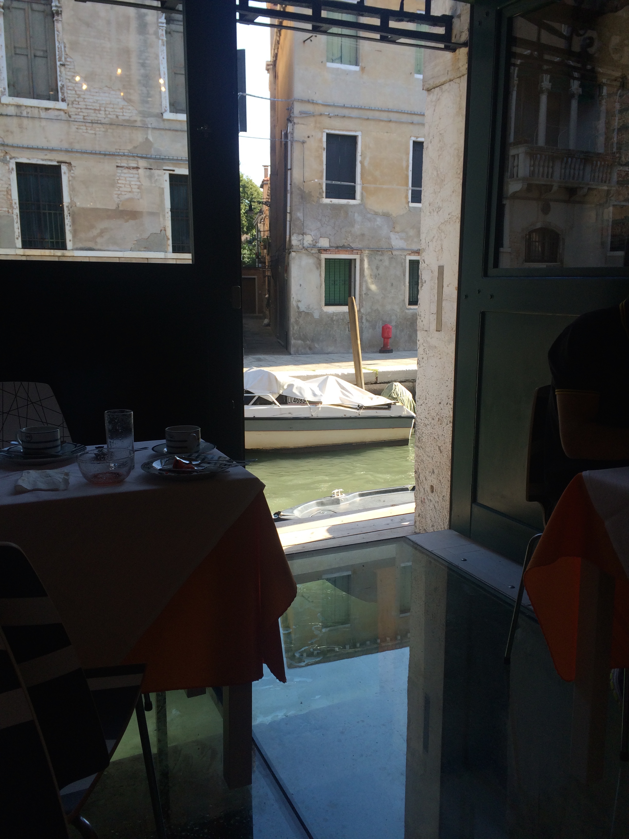 I really fell in love with the breakfast room. First, you have a look directly on a canal and second, they have installed a small part out of glass in the floor, so you can sit basically on the canal!