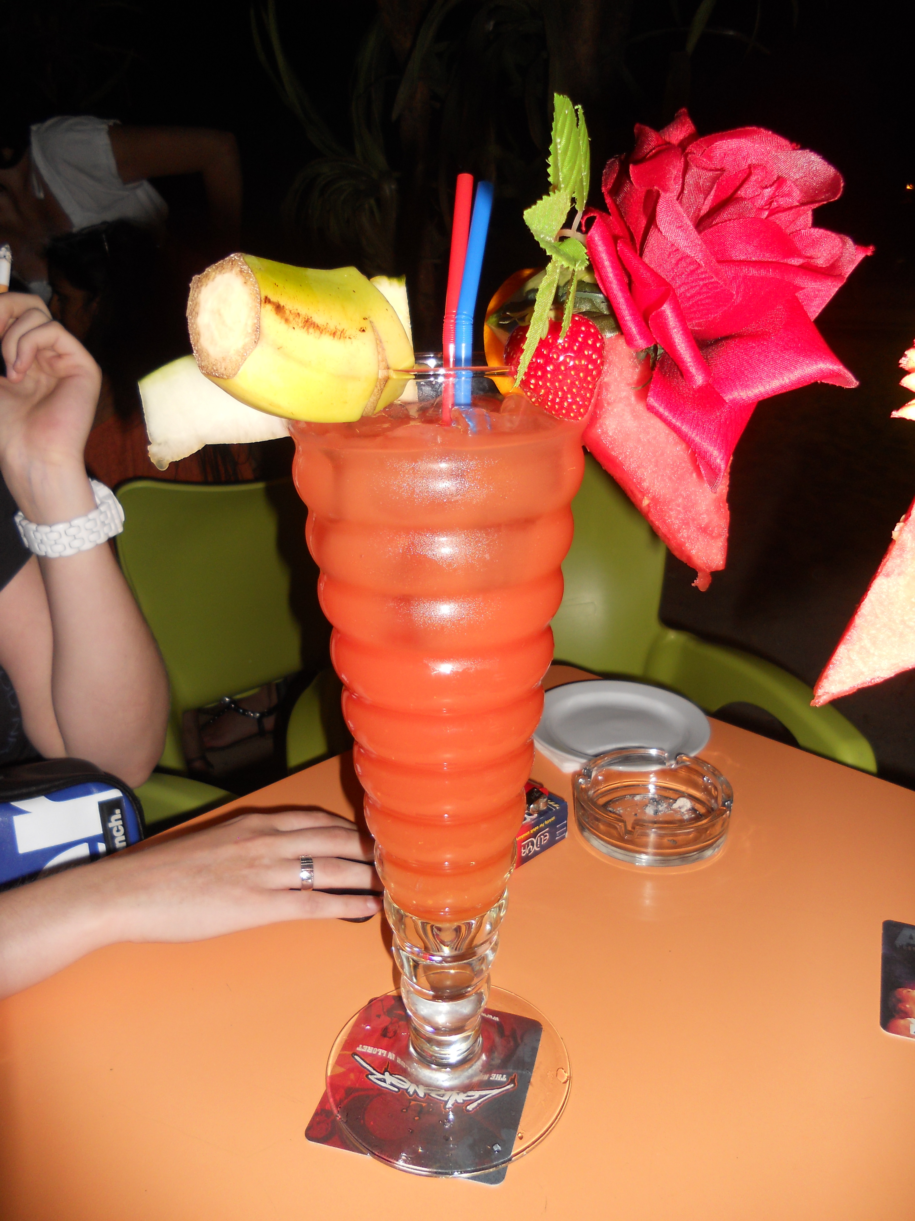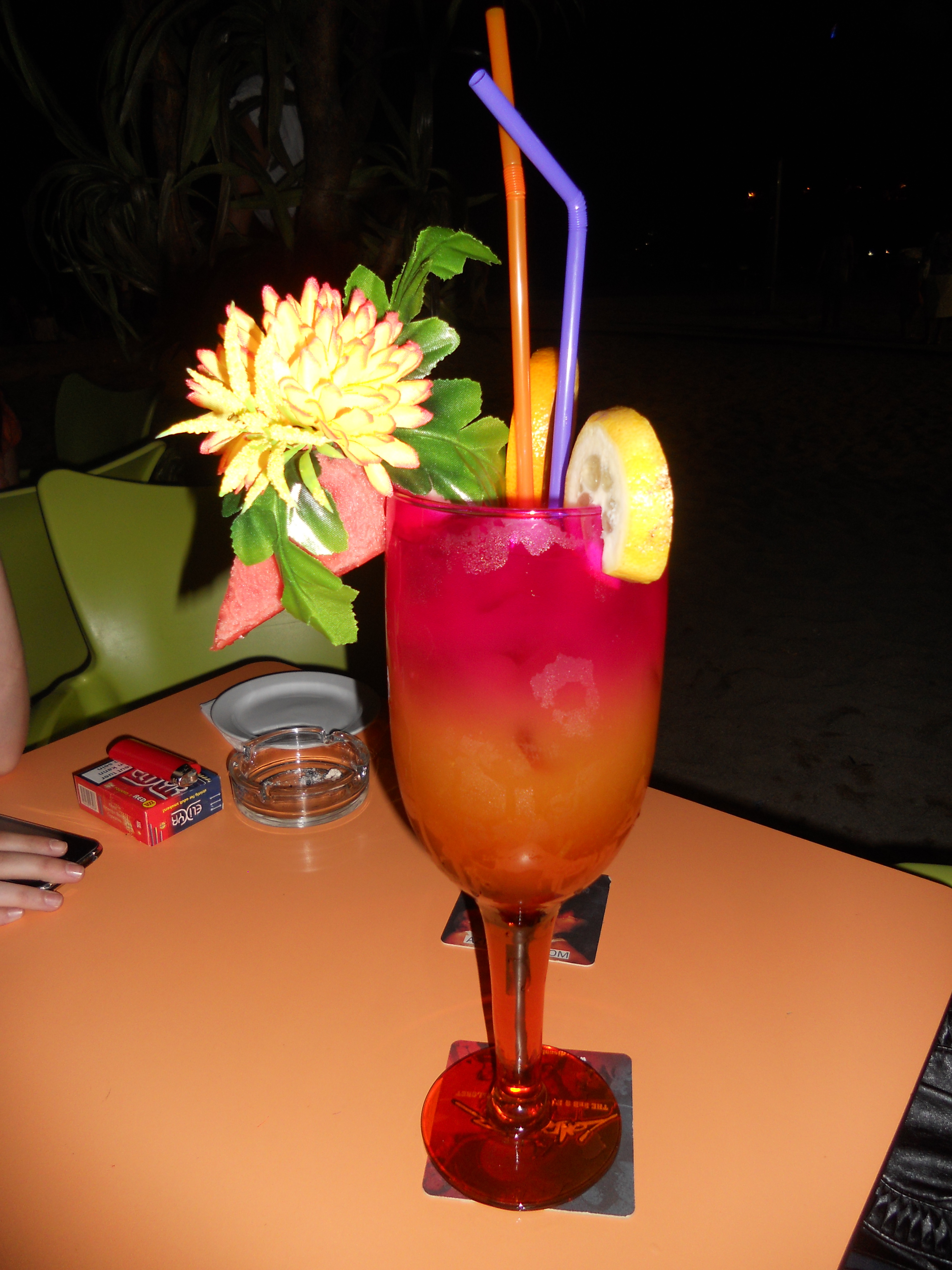 In the afternoon, we headed back to the apartment, and in the evening we went out. Lloret de Mar is the party destination for students in Europe. Especially around June, all the Luxembourgish students come there. Before we went to a disco, we always had a cocktail at one of the beach bars. They offered cocktails of one liter