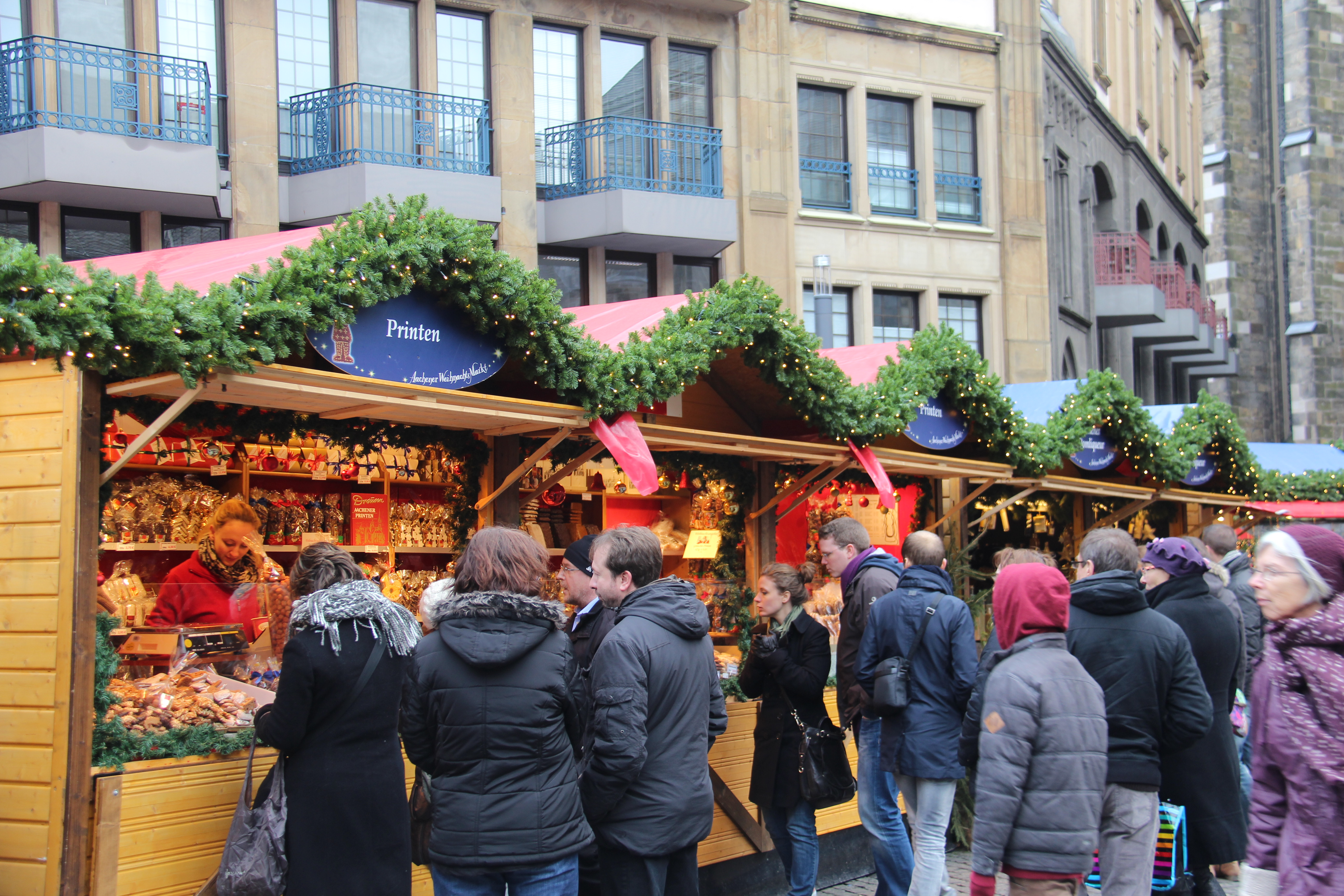 The Aachener Christmas market is one of the biggest ones in Germany with an attendance of 1,5 millions of people. The specialities of Aachen and also of their Christmas market are the Aachener Printen, gingerbread and the so called dome liqueur.